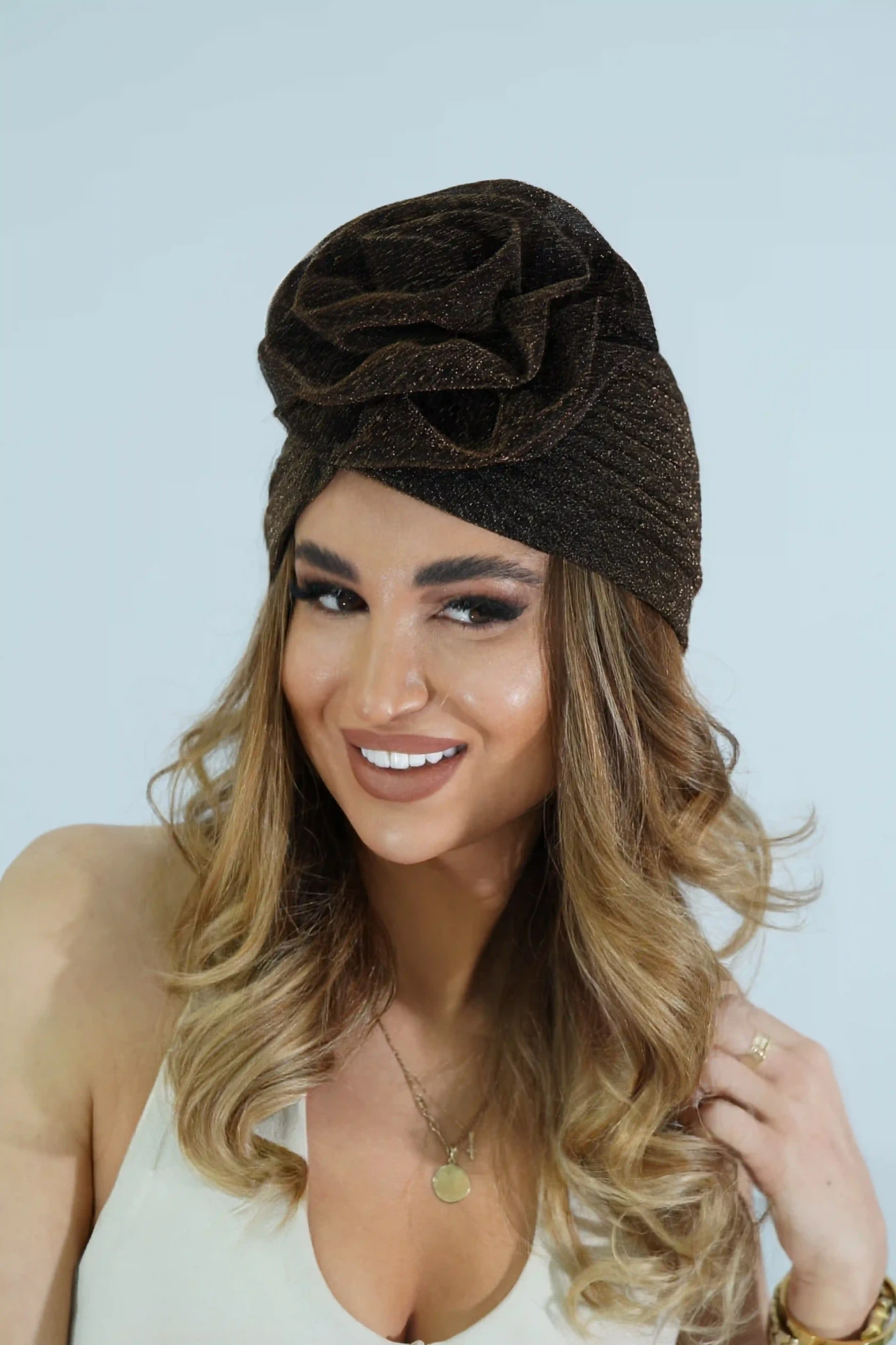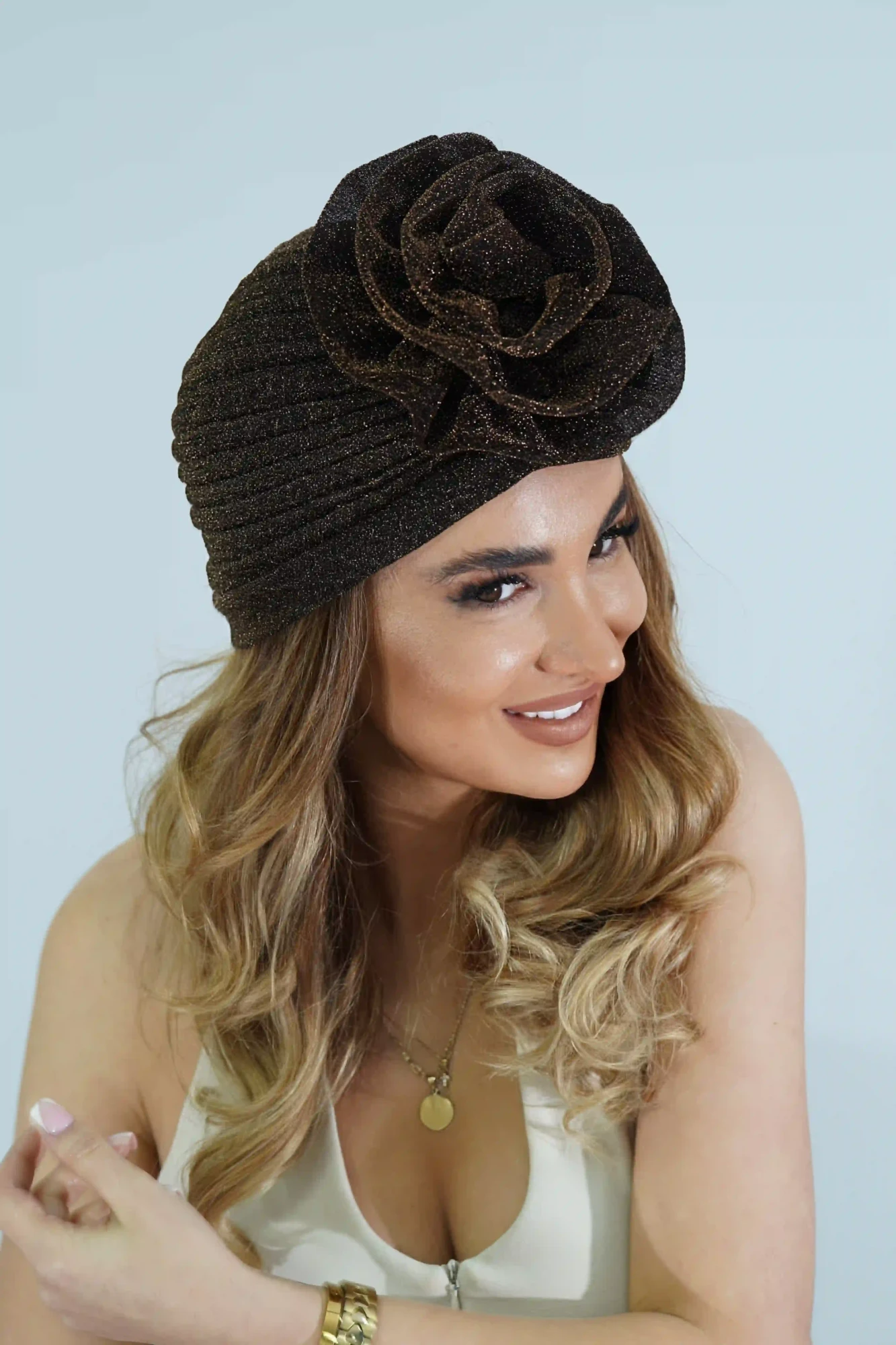 ყვავილის ფორმის ოქროსფერი ბრჭყვიალა ჩალმა